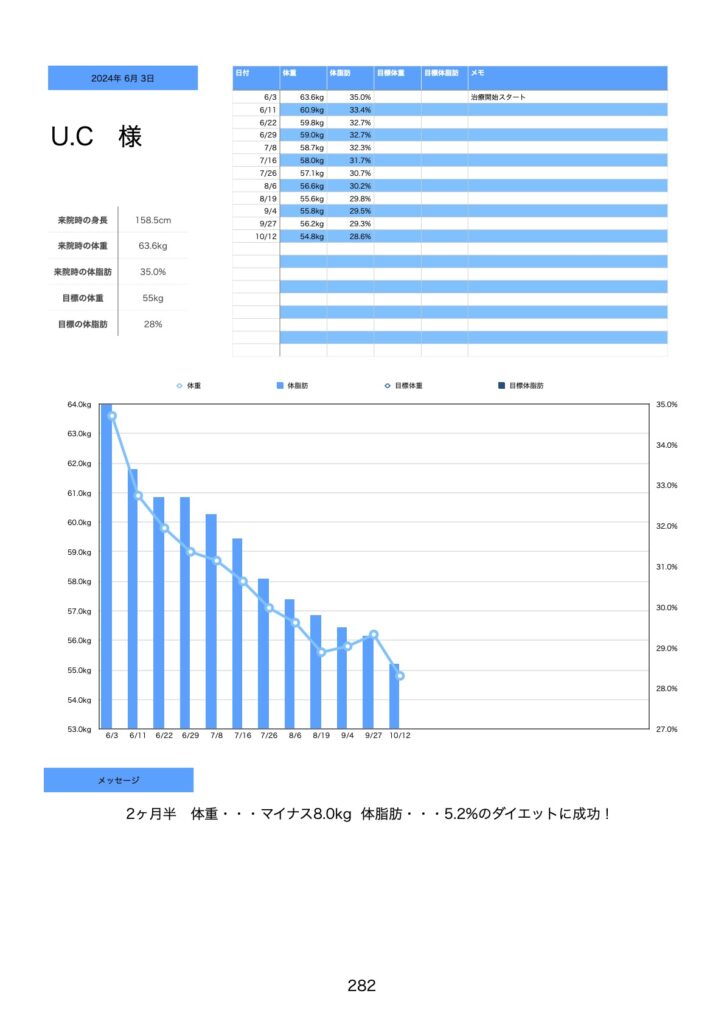 ですが結果、2ヶ月半で,体重が8.0kgのダイエットに成功されました!!