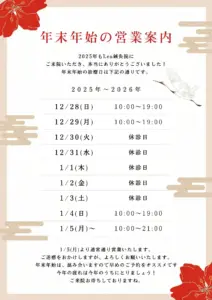 来年もご来院いただく、全ての方の健康と綺麗になるサポートをしていきますので、よろしくお願いします。