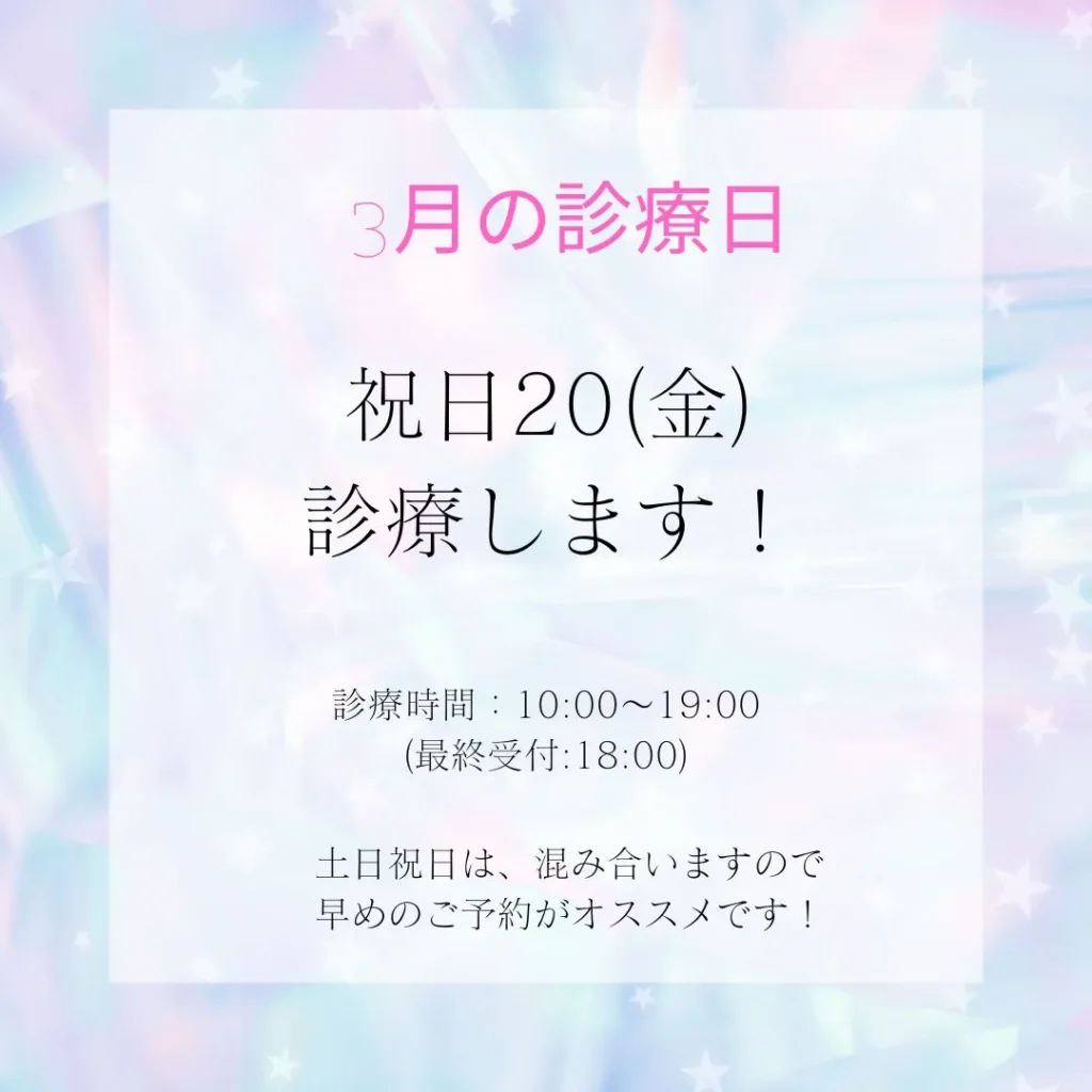 Lea鍼灸院の3月の診療日 祝日3連休20(金)診療します