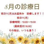 2025年9月3日 / 最終更新日 : 2025年9月2日 lea-shinkyu.blog NEWS Lea鍼灸院の9月の診療日 祝日3連休15(月)&23(火)診療します こんにちは!勝どき駅5分 月島駅5分・晴海・豊洲エリアにあるダイエット専門鍼灸院Lea鍼灸院の鍼灸師 藤木です。 今日は、9月の診療日のお知らせです。 最近は、夏なので痩せたいと!!ダイエット鍼灸コースでのご予約・お問い […]