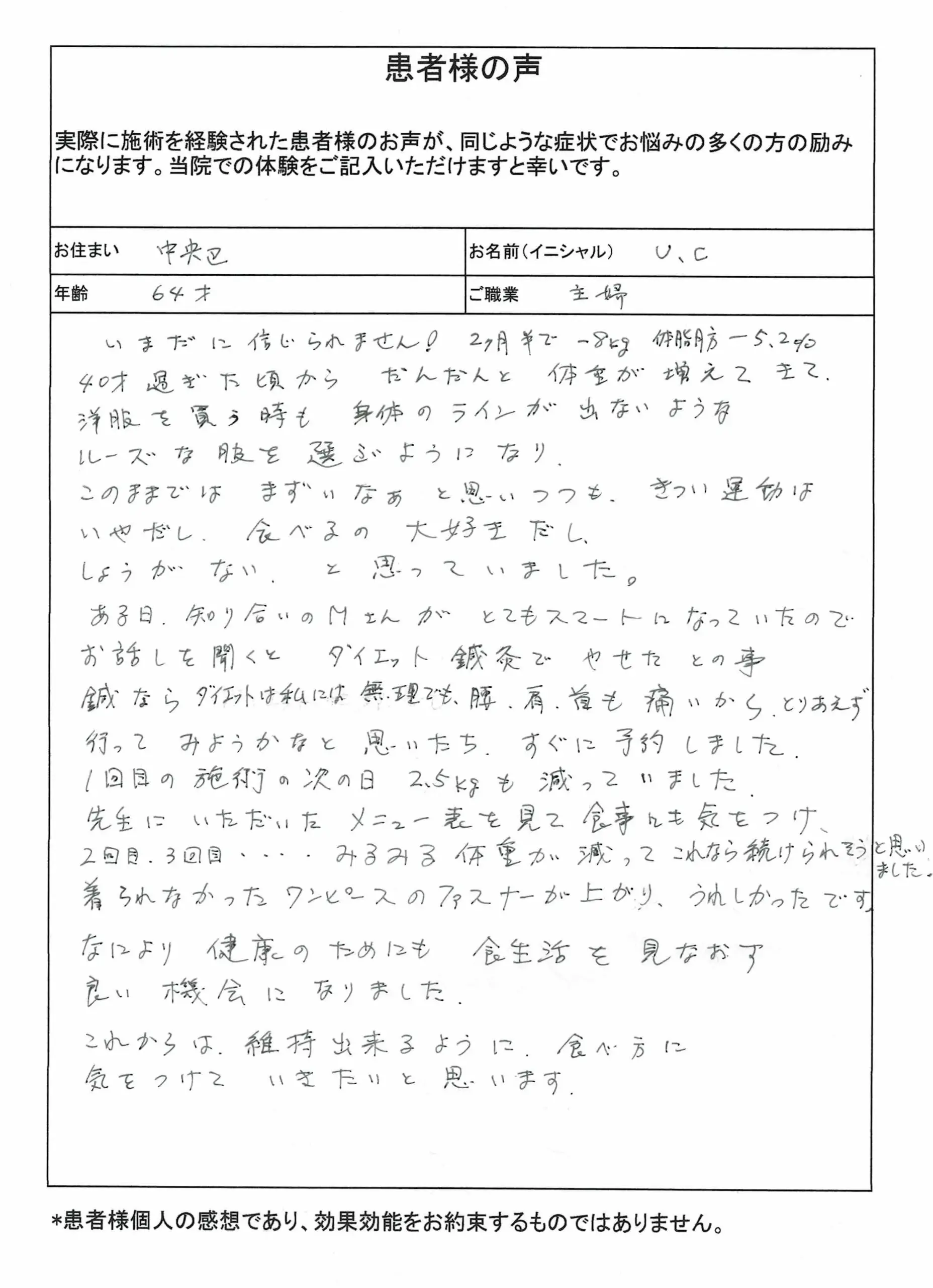 中央区にお住まいのU.Cさま(64歳 女性 主婦)